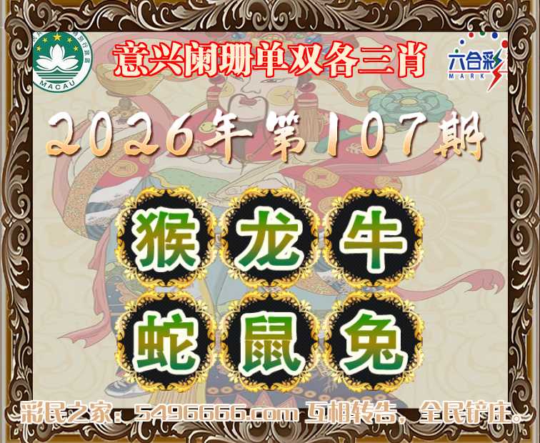 107期: 🗡『意兴阑珊』 🗡单双各三肖🗡【猴.龙.牛.蛇.鼠.兔】开:00准